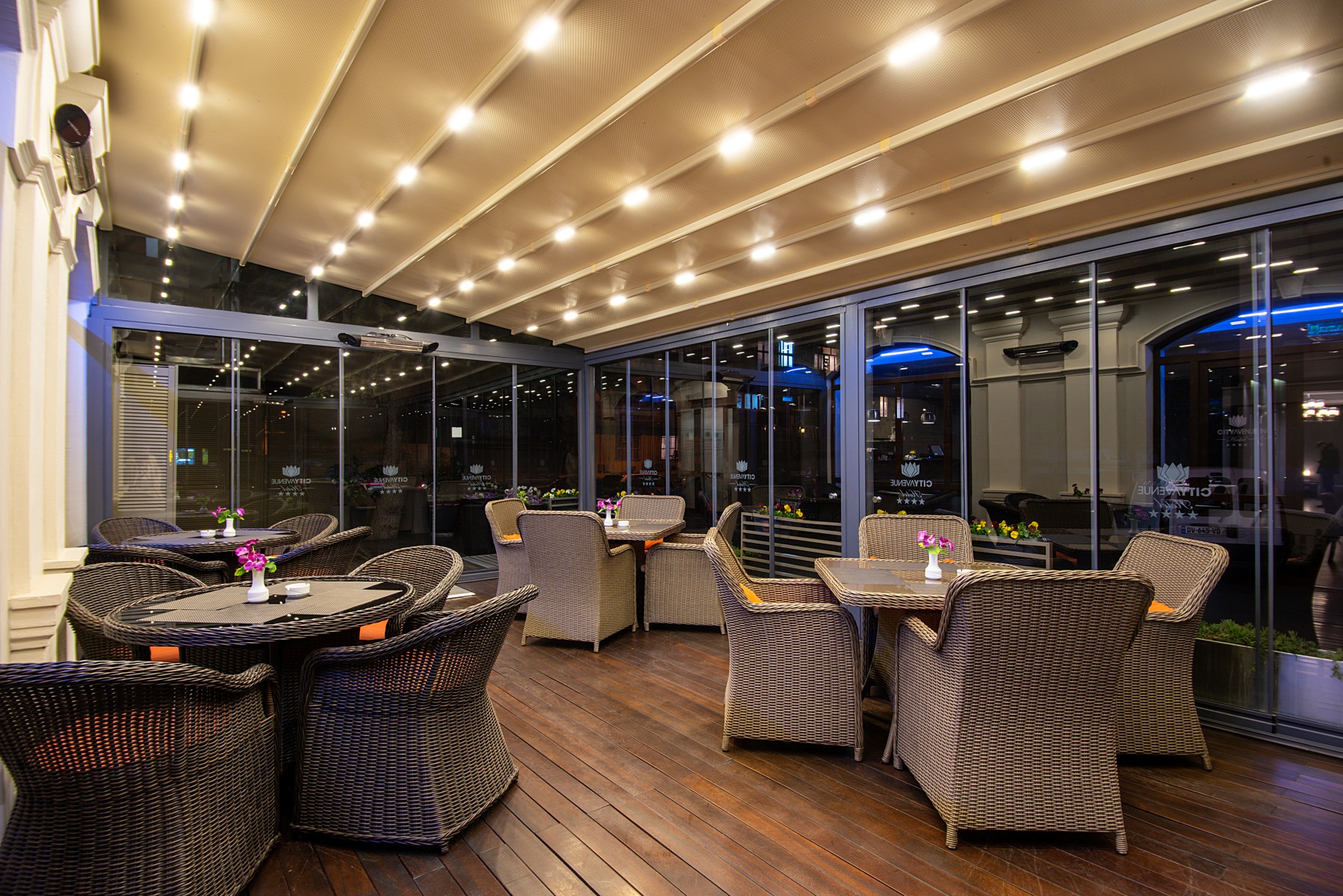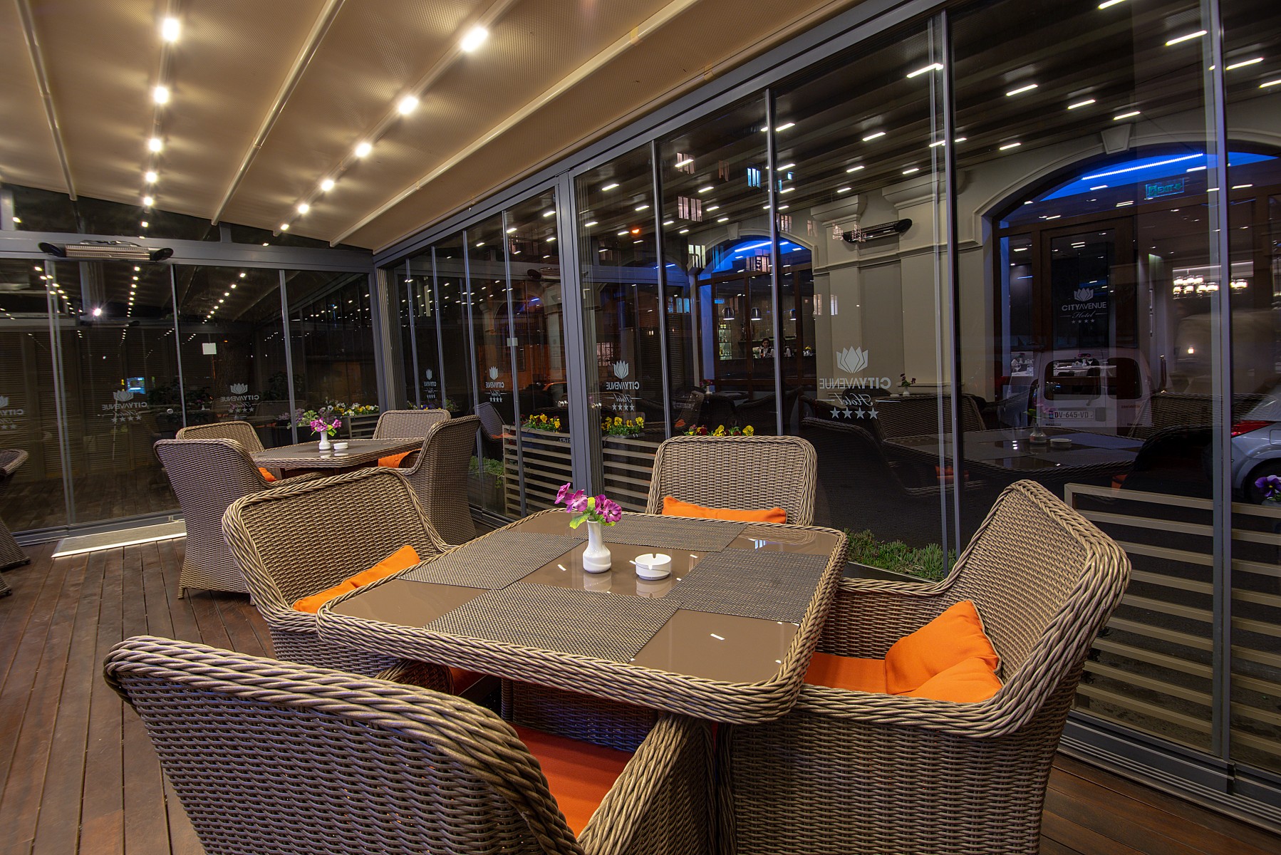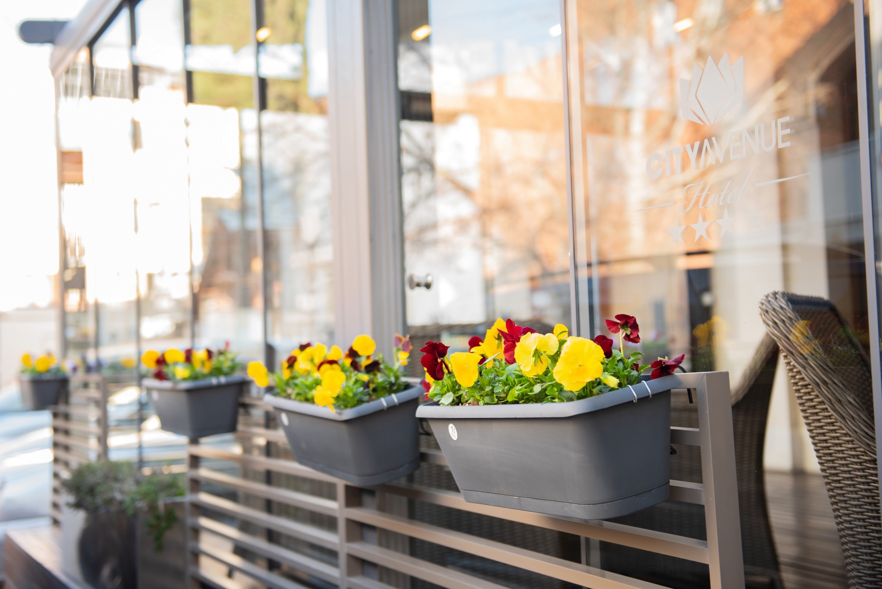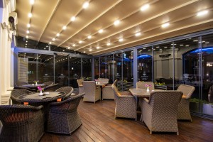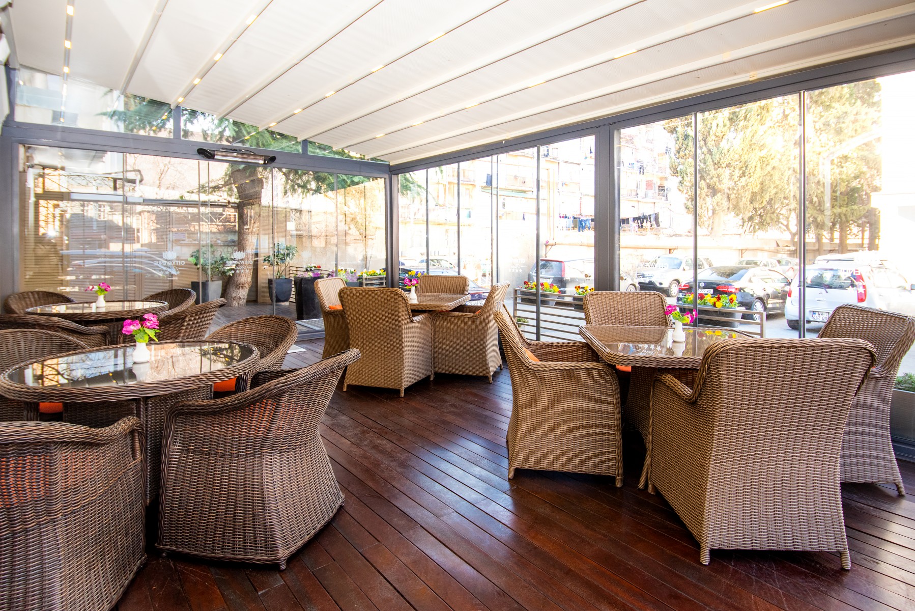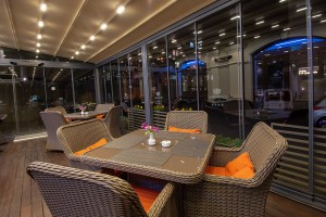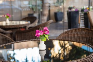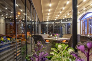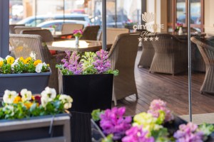 Decorated with colorful flowers the Hotel terrace is an ideal and cozy place to spend Your free time despite the season