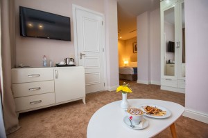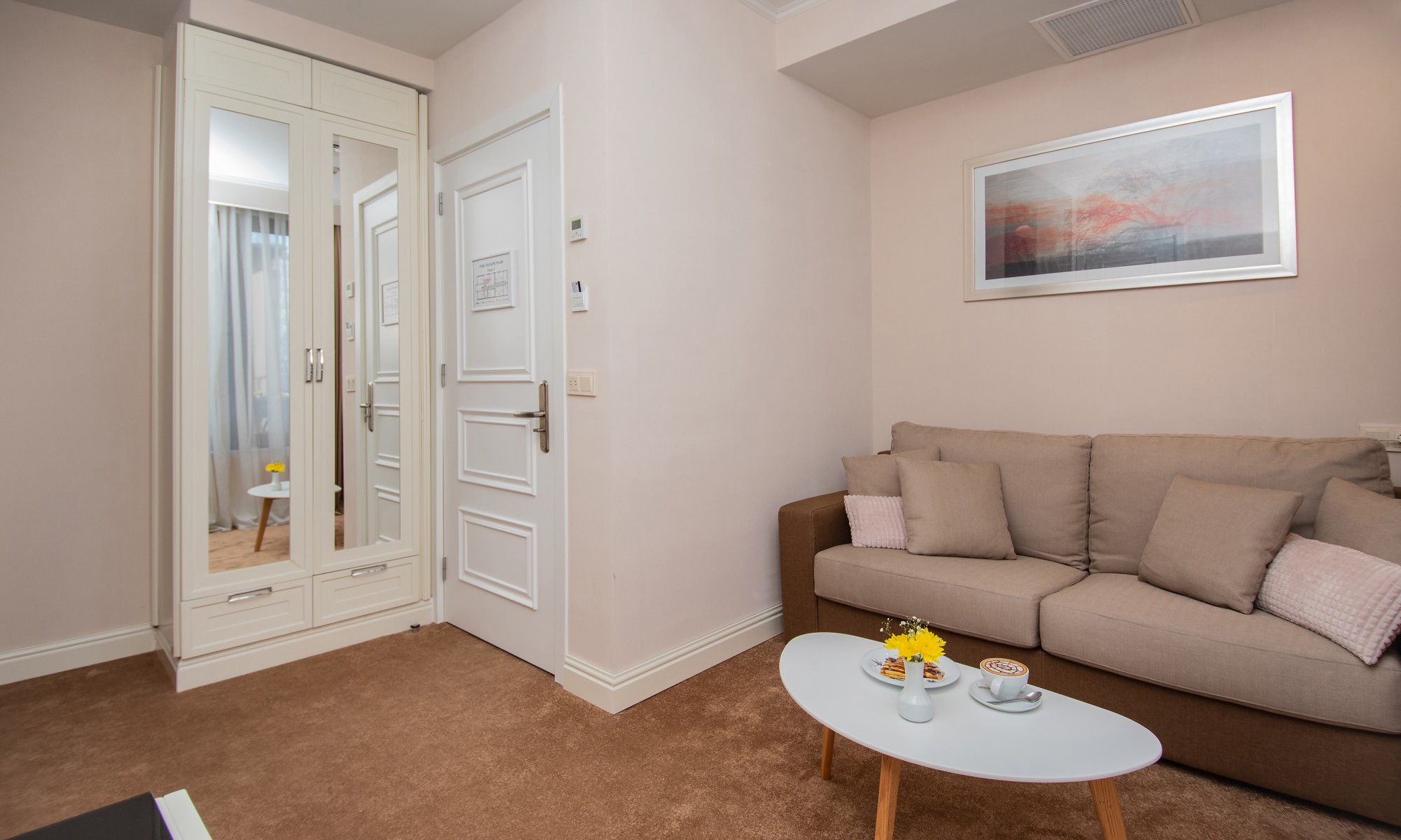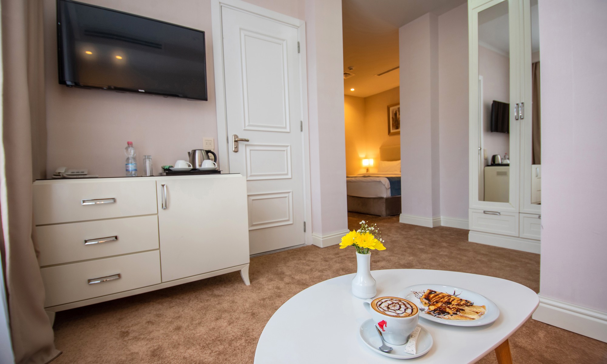 Spacious rooms of 28 sq.m., consisting of a bedroom and a seating area, equipped with comfortable furniture and everything you need for both family and business trip