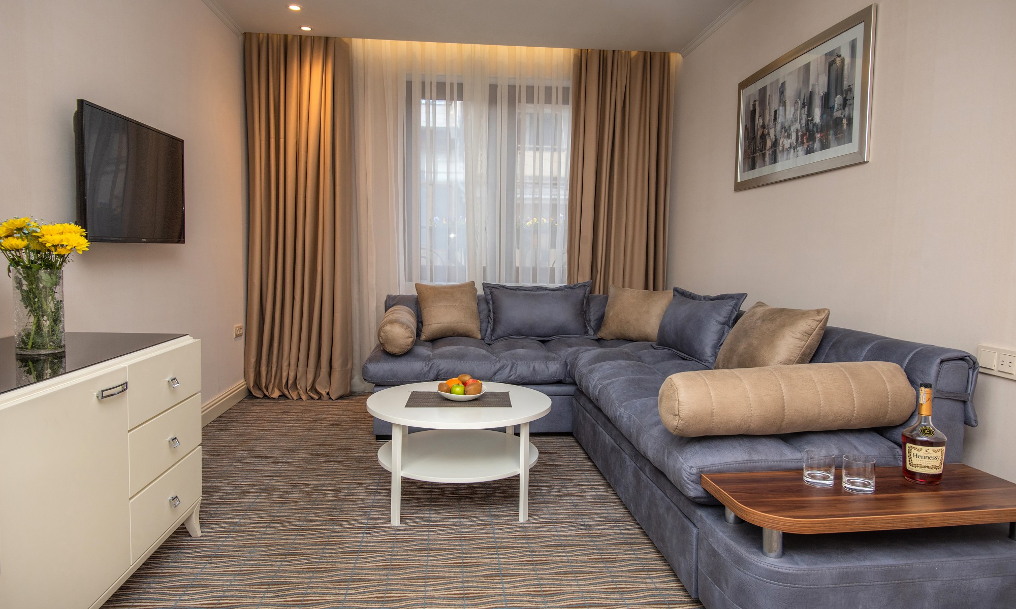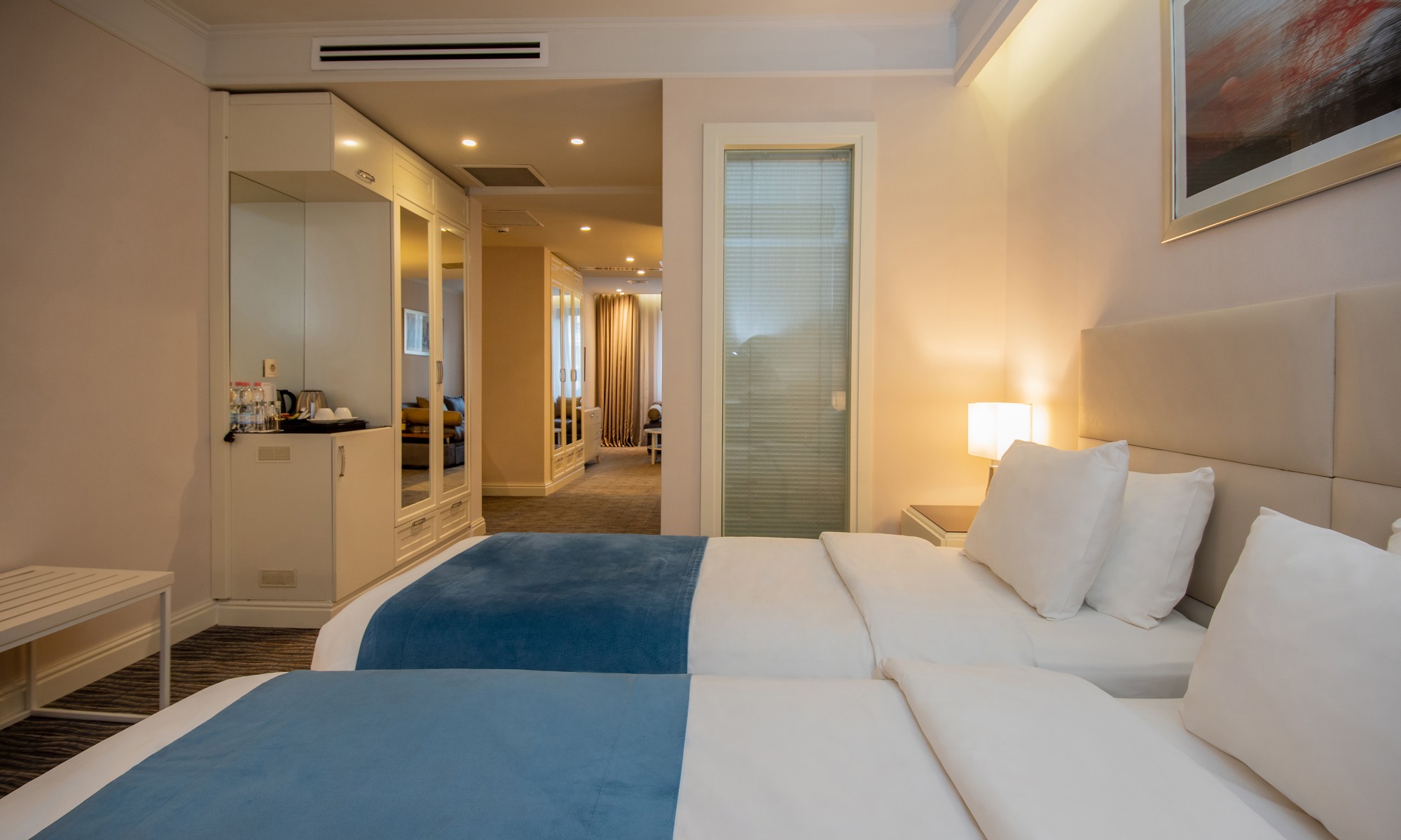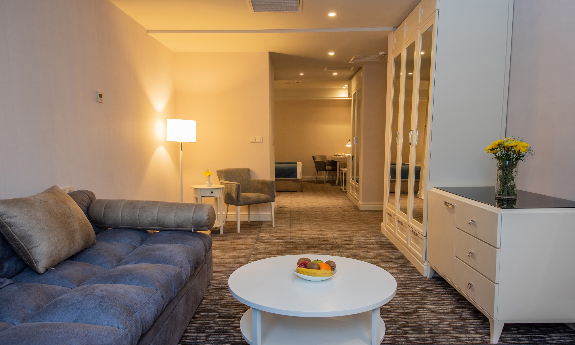 an ideal choice for the guests, who prefer the opportunity to share leisure and working spaces outside home. It is a comfortable, spacious room of 44 sq.m., consisting of a bedroom and a seating area, decorated with modern and elegant furniture, equipped with all necessary facilities.