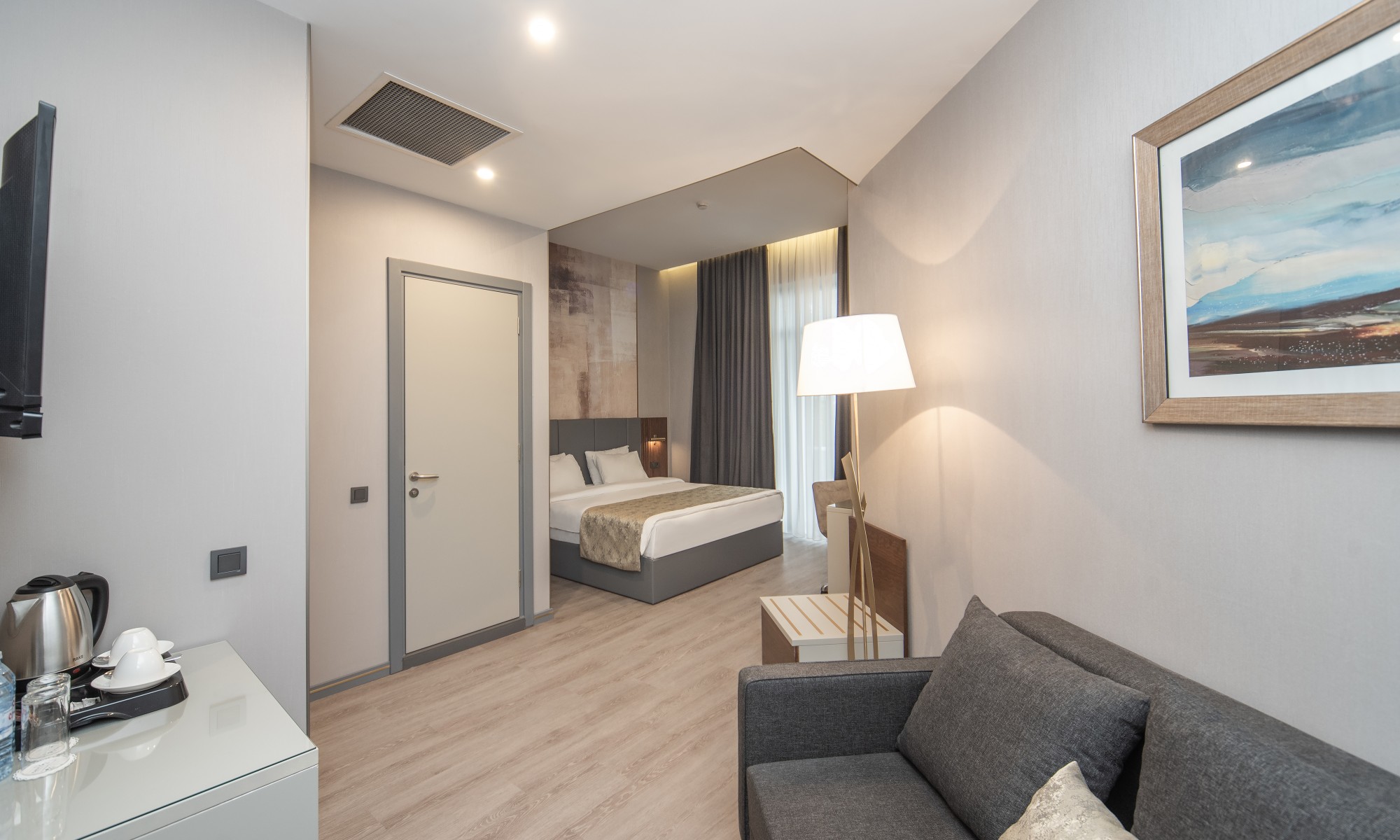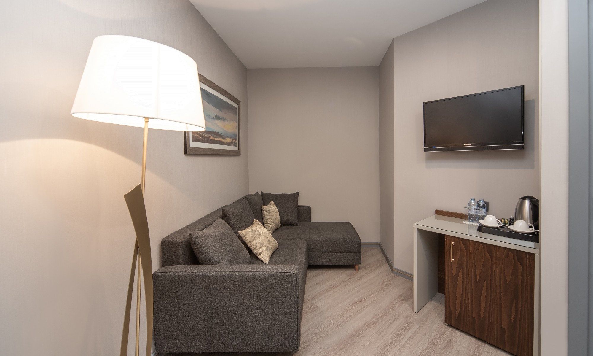 A modern chamber of 25 sq. m. with balcony is an ideal choice for those who prefer the opportunity to share leasure and working spaces outside home. Chamber unites sleeping and sitting areas in one space.