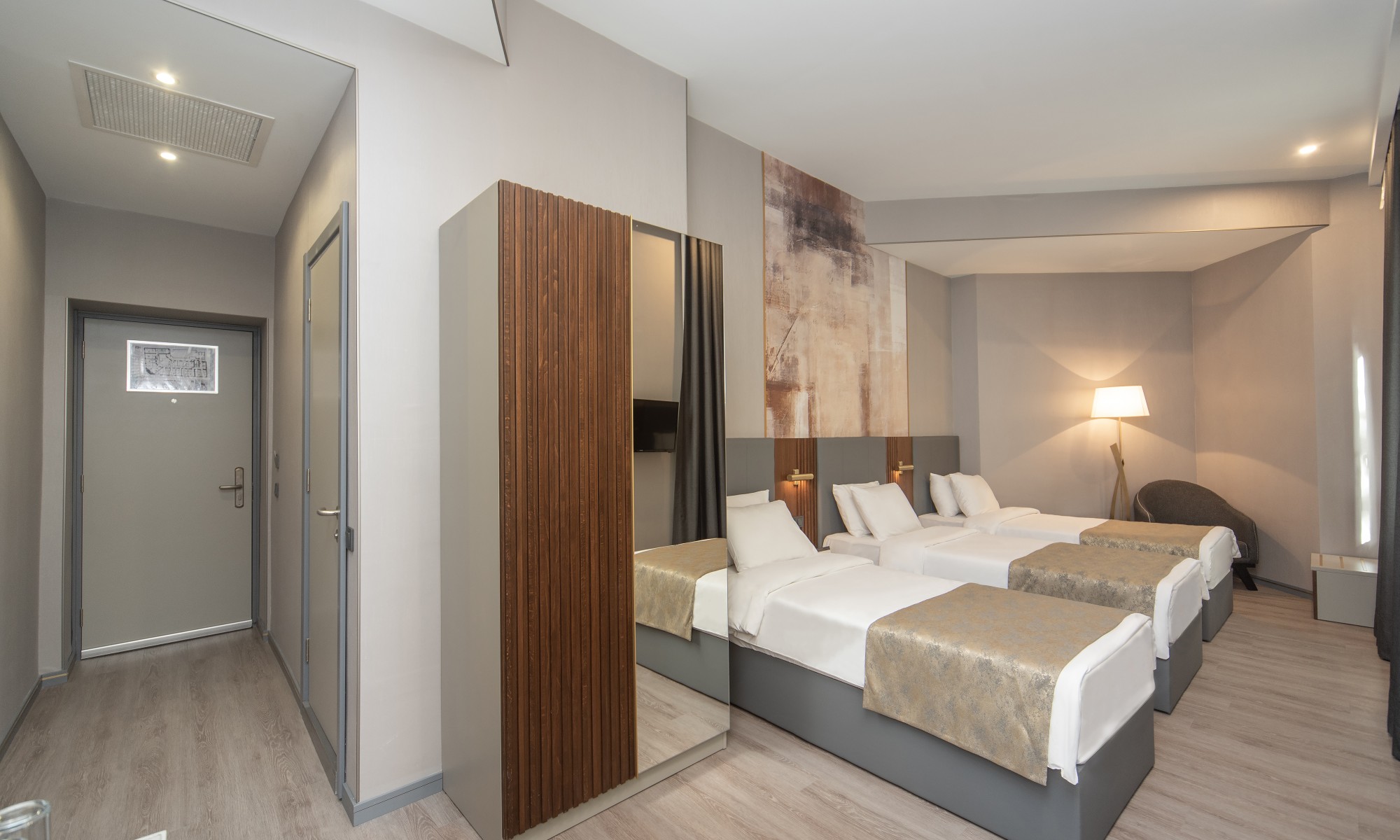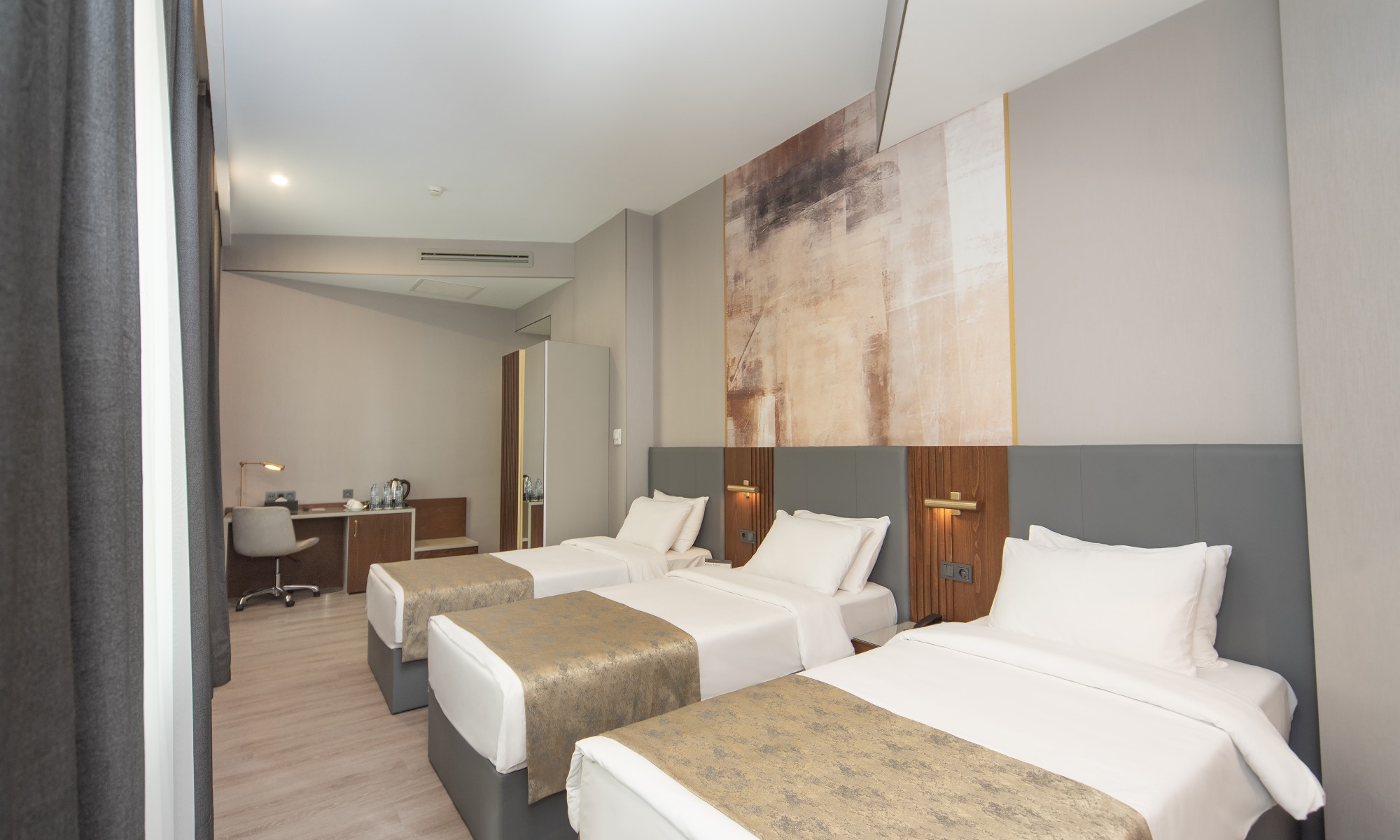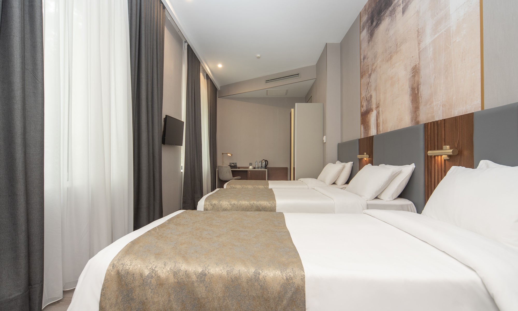 Triple chambers, wchich are 30 sq.m., are available with three single beds or a king bed and a single. This is the best choice for both who travels with the friends or family.